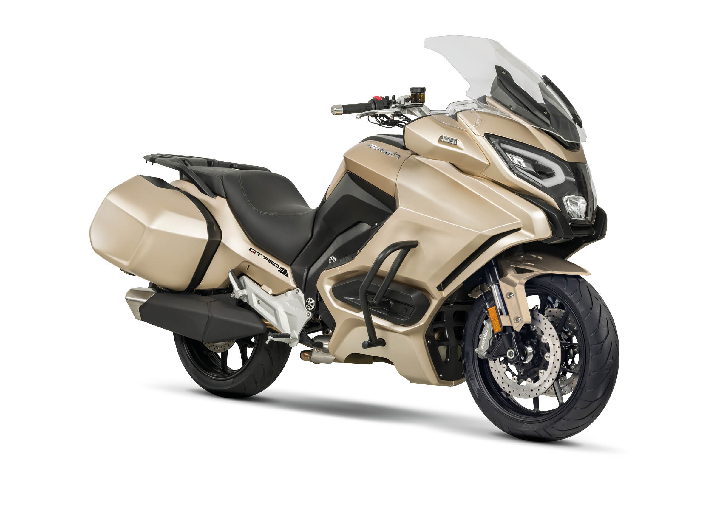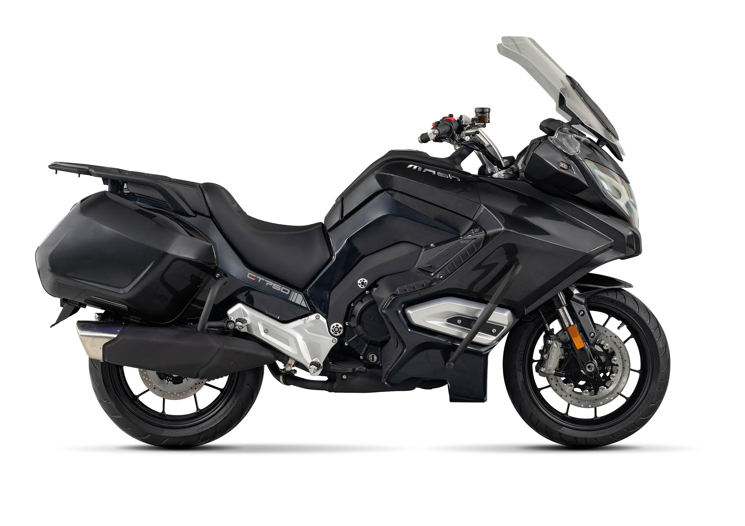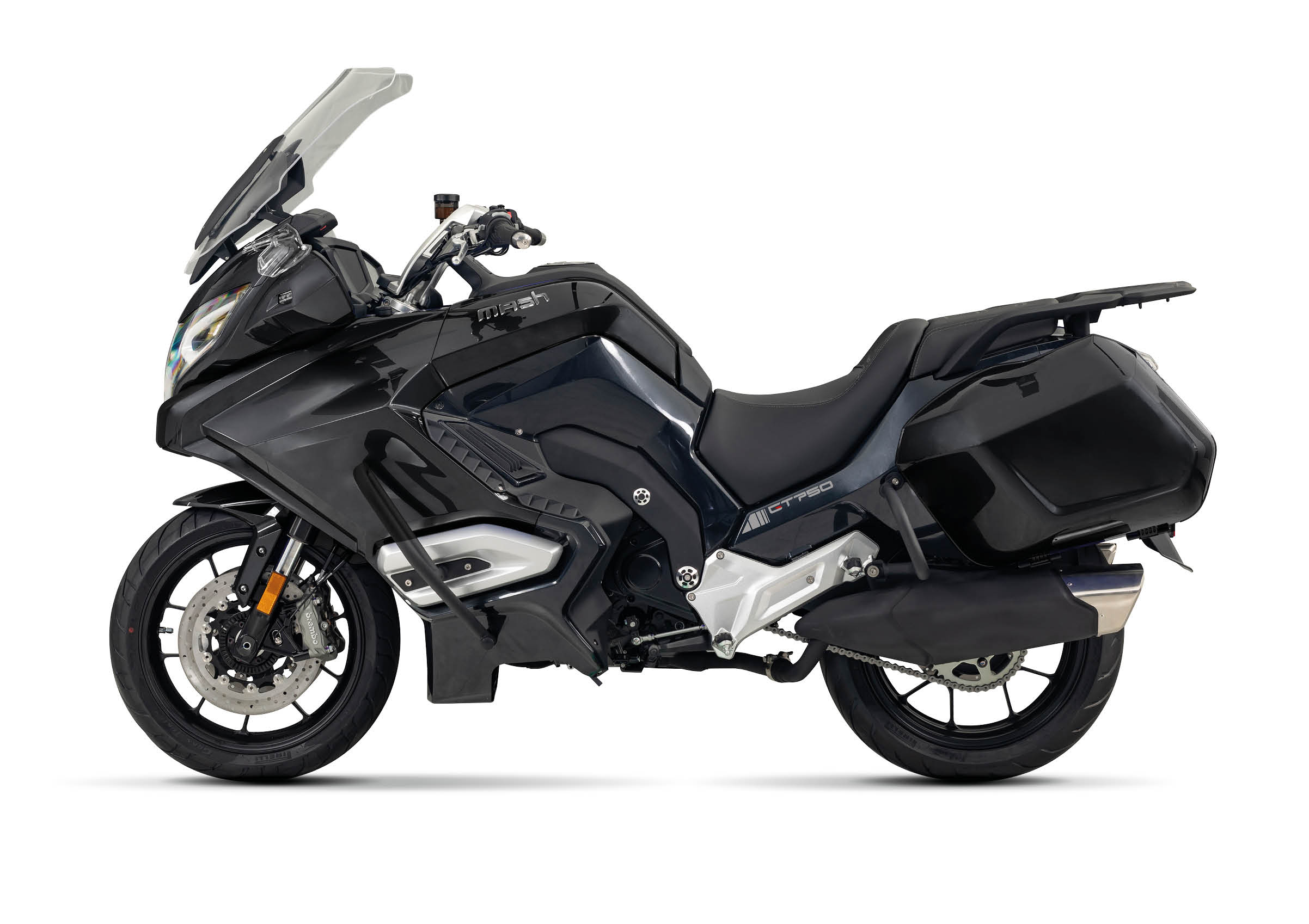 De GT750, een échte Gran Tourismo, comfortabel, compleet en heel betaalbaar. Ontwikkeld in samenwerking met Jedi Motor, waarmee Mash een nieuwe avontuurlijke weg inslaat. De GT750 combineert een soepel 730 cc-tweecilinderblok (75 pk, 69 Nm) met hoogwaardig rijcomfort. De zithouding is ontspannen, dankzij het verhoogde stuur, de royale zadelruimte en de elektrisch verstelbare ruit. Het aluminium dubbel wiegframe, de verstelbare 41 mm upside-down voorvork en Brembo-remmen met Bosch ABS zorgen voor vertrouwen bij iedere rit. Met een 24-liter tank en een gemiddeld verbruik van 4,6 l/100 km is de GT750 helemaal klaar voor langere tochten, alleen of met z’n tweeën.