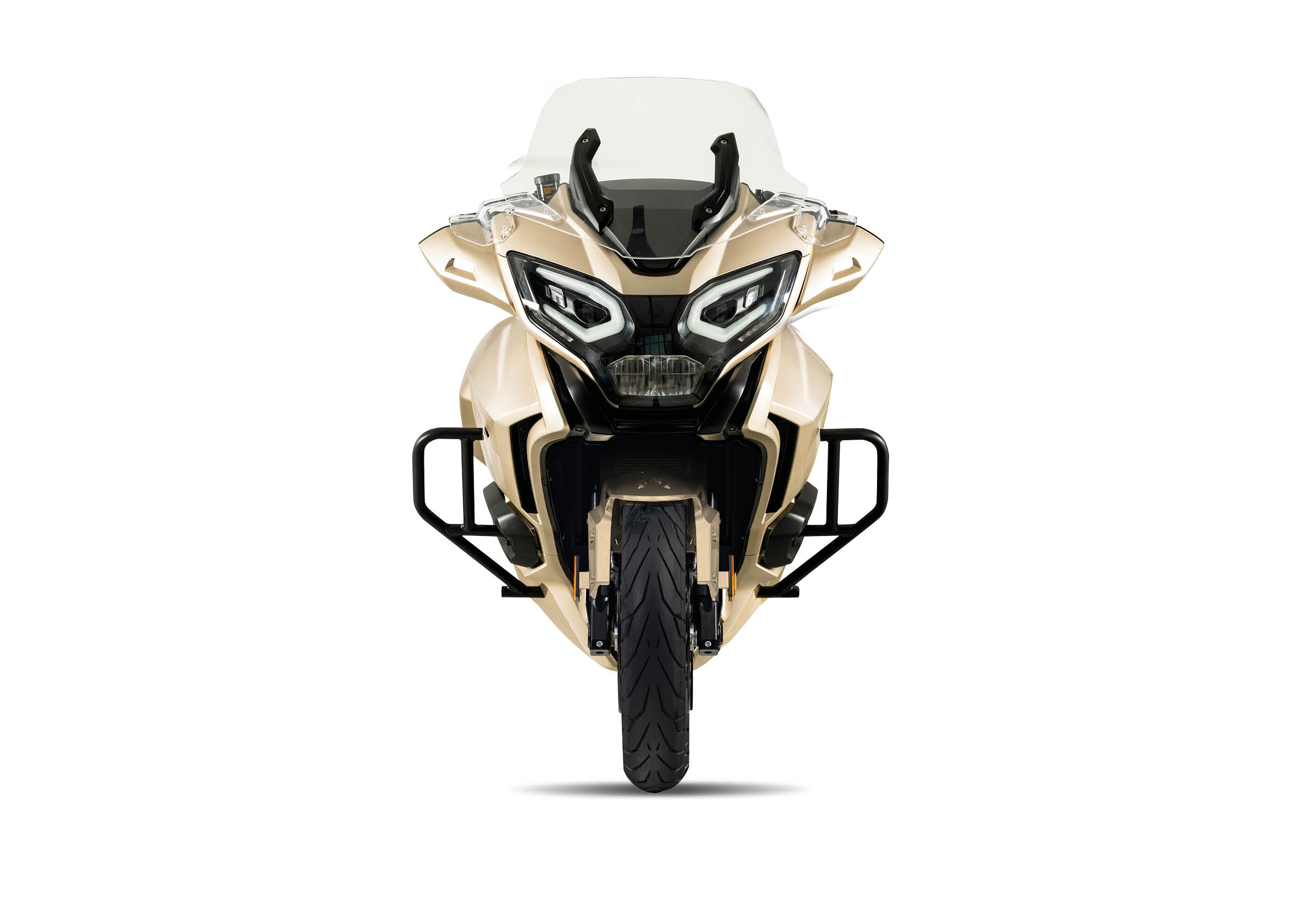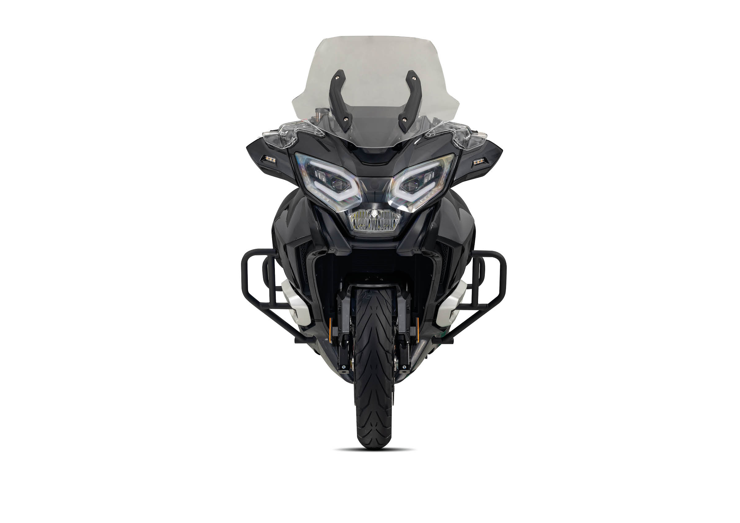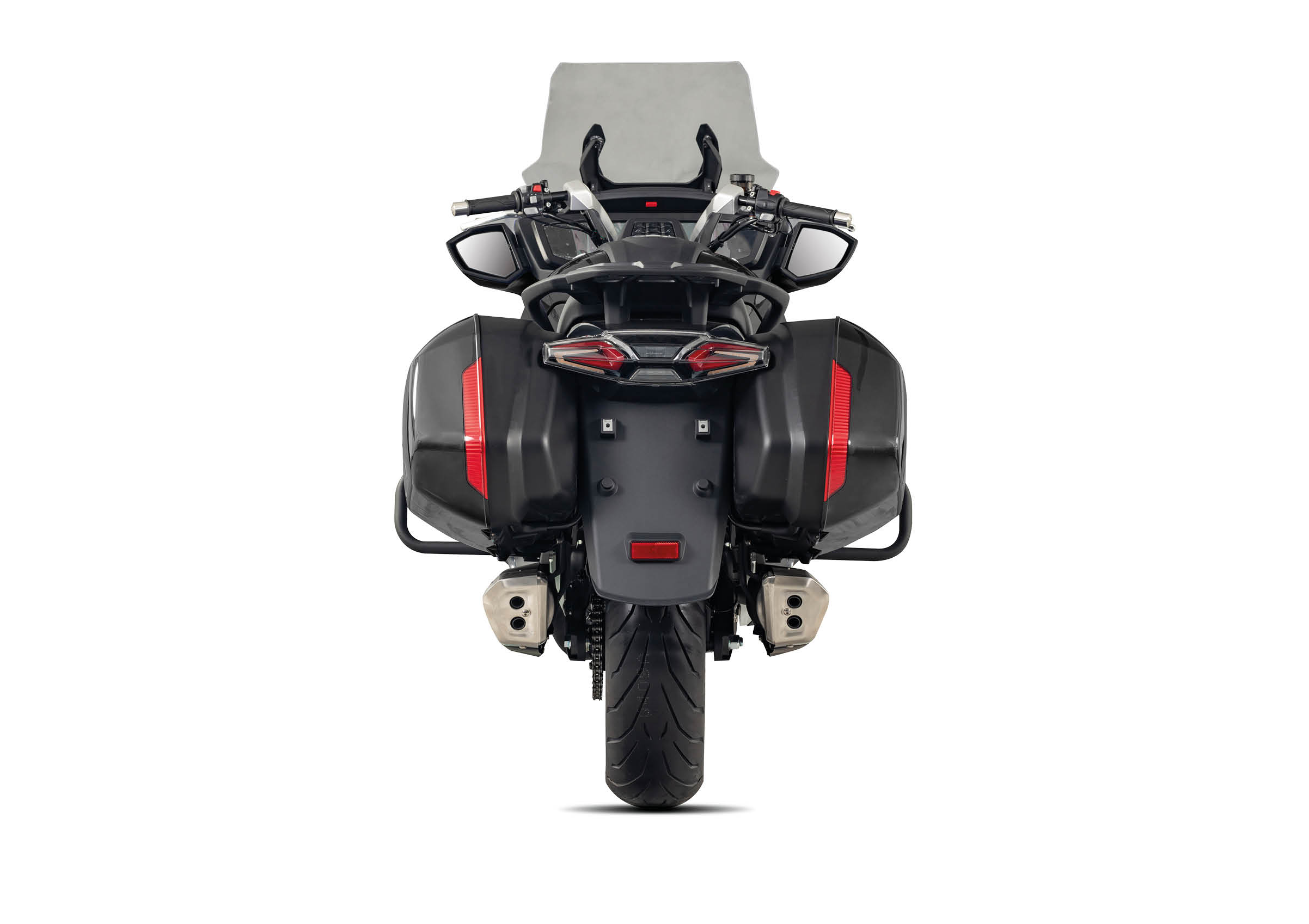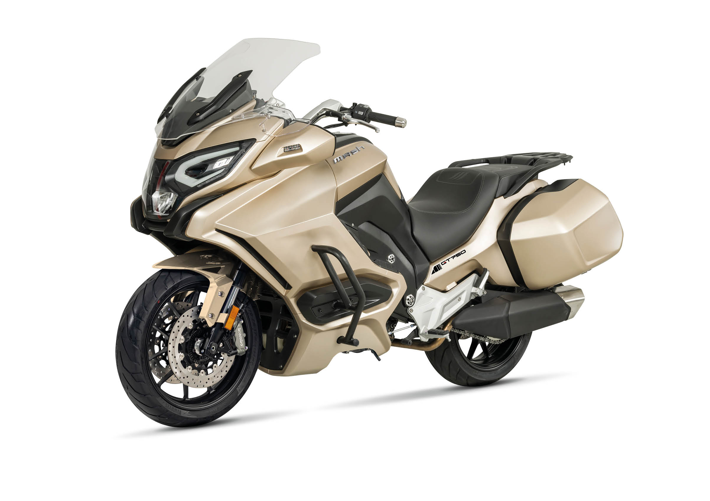 De GT750, een échte Gran Tourismo, comfortabel, compleet en heel betaalbaar. Ontwikkeld in samenwerking met Jedi Motor, waarmee Mash een nieuwe avontuurlijke weg inslaat. De GT750 combineert een soepel 730 cc-tweecilinderblok (75 pk, 69 Nm) met hoogwaardig rijcomfort. De zithouding is ontspannen, dankzij het verhoogde stuur, de royale zadelruimte en de elektrisch verstelbare ruit. Het aluminium dubbel wiegframe, de verstelbare 41 mm upside-down voorvork en Brembo-remmen met Bosch ABS zorgen voor vertrouwen bij iedere rit. Met een 24-liter tank en een gemiddeld verbruik van 4,6 l/100 km is de GT750 helemaal klaar voor langere tochten, alleen of met z’n tweeën.